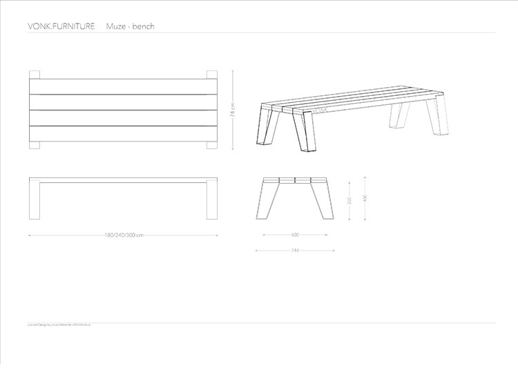 De Bench Muse Lounge van Vonk is een bankje buiten zowel sobere en hedendaagse gemaakt door ontwerper Jonas Willems. Combinatie van vakmanschap en moderniteit, hecht de workshop van het Belgische merk veel belang aan de vorm en functionaliteit. De Bank Muse Lounge combineert de twee. Authentieke en elegante, deze Outdoor bankje gemaakt van gegalvaniseerd staal en Iroko houten biedt echte weerstand tegen verwering. De structuur en de basis is beschikbaar in 3 afwerkingen: gegalvaniseerd staal, staal gelakt wit of zwart gelakt staal. Voor het geschilderde frame is voltooid, staal bekleed met poedervorm verf (poeder coatingproces). Na verloop van tijd hout Iroko van de stoel patina door te trekken op grijs voor een blik nog authentiek. De Muse Lounge Bank is verkrijgbaar in 3 lengtes 180 cm / 240cm / 300cm aan alle toepassingen en alle ruimten, worden zij openbaar of particulier. Andere basiskleuren zijn beschikbaar op aanvraag, contacteer ons.
