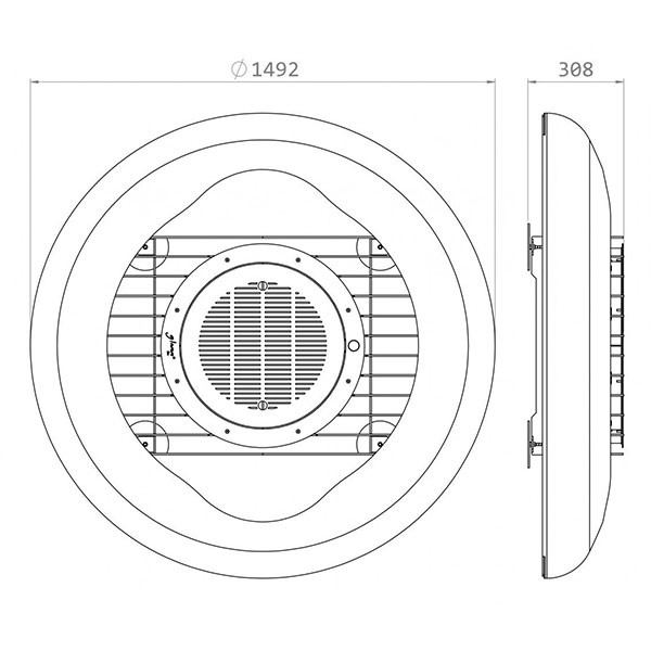 Verbrandingszone ontworpen in geborsteld roestvrij staal AISI 316- Afmetingen: Ø149.2cm x H30.8cm - Gewicht : 224kg