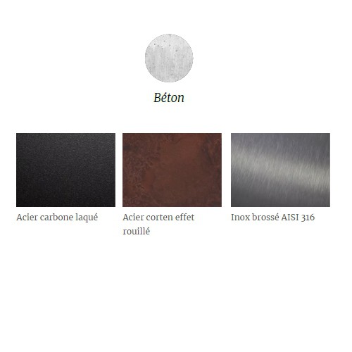 Design vuurpot voor buitengebruikBetonnen carrosserie - zittingen in gelakt koolstofstaal of roestig effect cortenstaal of geborsteld roestvrij staal