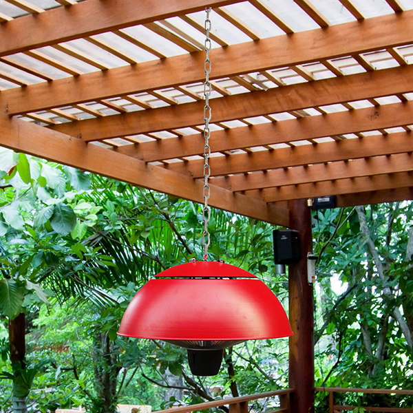 De Suspended Halogen Outdoor Heater 1500Wvan OutTrade is een kachel om zowel buiten als binnen aan een plafond of balk te hangen. Deze halogeenverwarmer verwarmt het lichaam en niet de lucht voor optimaal buitencomfort, zelfs op enigszins koele avonden. De aluminium, roestvrij staal en kunststof materialen, evenals de IP24-bescherming tegen spatten en spatten van water geven het een hoge weerstand buitenshuis. Deze buitenverwarming verspreidt niet alleen een aangename warmte, maar verlicht de ruimte ook met een gedempt omgevingslicht. Met zijn 3 beschikbare schaalkleuren, rood, wit, antracietgrijs, is deze hangende kachel ultra-decoratief. Om het aan en uit te zetten, kan niets eenvoudiger zijn, trek gewoon aan het koord.