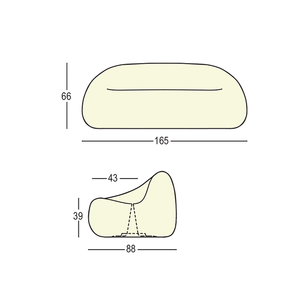 Sofa polyethyleen ontworpen voor buitenAfmetingen: L165 x larg88cm x H66cm (H39cm basis).