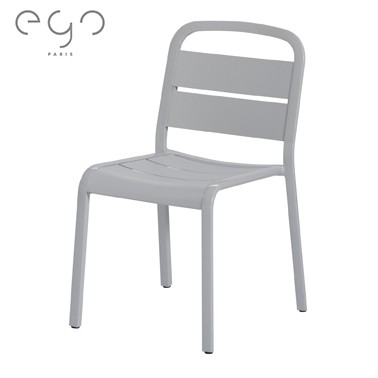 Met zijn thermo-gelakte aluminium structuur met halfglans (gladde glans) of getextureerde lak en zijn thermo-gelakte aluminium lamellen met getextureerde lak of teakhouten latten, heeft deze eetkamerstoel een uitstraling die zowel eenvoudig als eigentijds is.