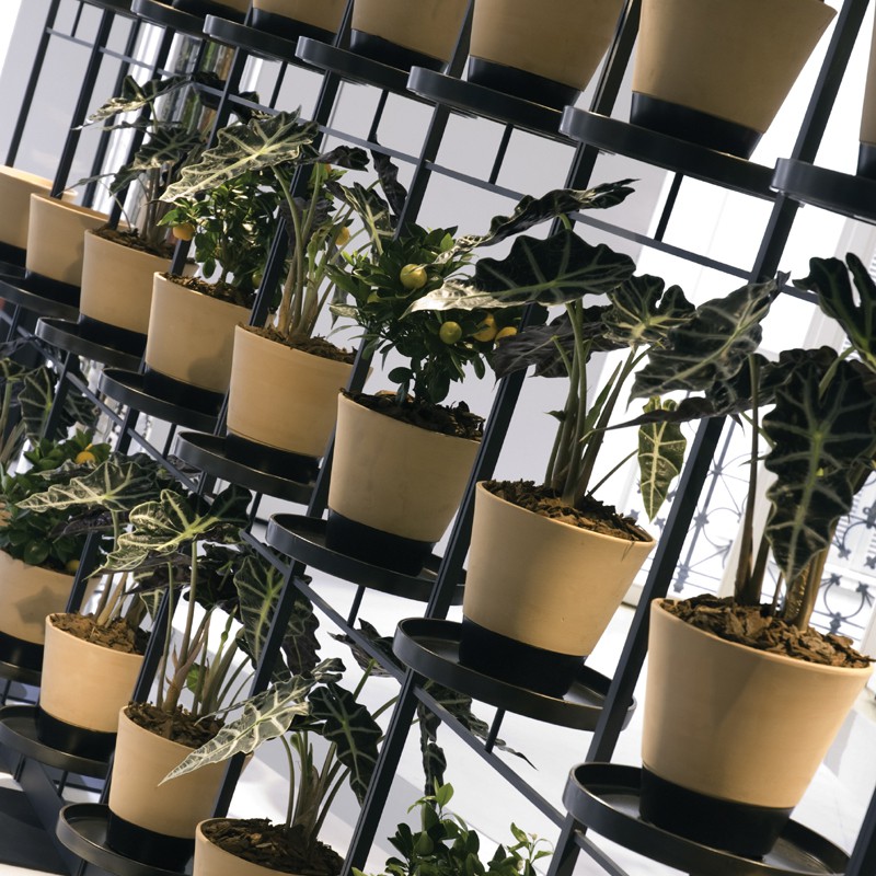 Serie 3 verwisselbare potten op een metalen structuur