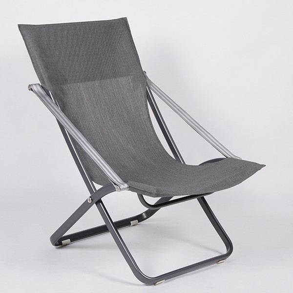 Canvas bekleding Batyline® Eden gecoördineerd Zilvergrijs (voor witte structuur) of Titanium (voor antracietstructuur) - Grijze bandOpvouwbare en verstelbare stoel (2 rugposities)