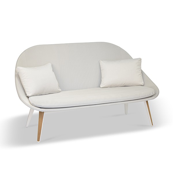 Bank ontworpen voor buitengebruik - 2-zitsbankStructuur in gelakt aluminium - poten met teakhouten inleg - Sling outdoor technische canvas bekleding