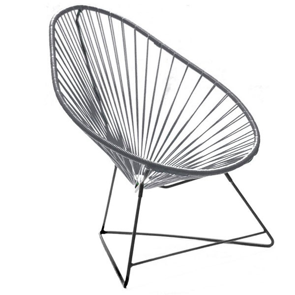 Een klein beetje van geschiedenis rond deze handgemaakte stoel die zijn naam 'Acapulco"van een Mexicaanse resort zeer populaire Hollywood-sterren in de jaren 50. concu met een touw PVC hoge sterkte, bestand draagt tegen het weer... deze stoel past zowel binnen als buiten.