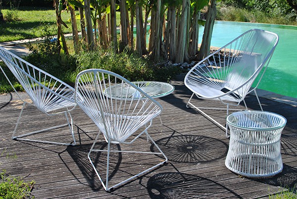 Acapulco, stoel retro en design, combineert stijfheid als gevolg van de stalen structuur geschilderd, en flexibiliteit door de PVC-touw... de Acapulco-stoel is zowel duurzaam en comfortabel. Met een hoog genoeg zithoogte deze stoel is ook een stoel en is perfect voor het verbeteren van uw eettafel.