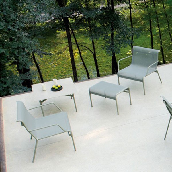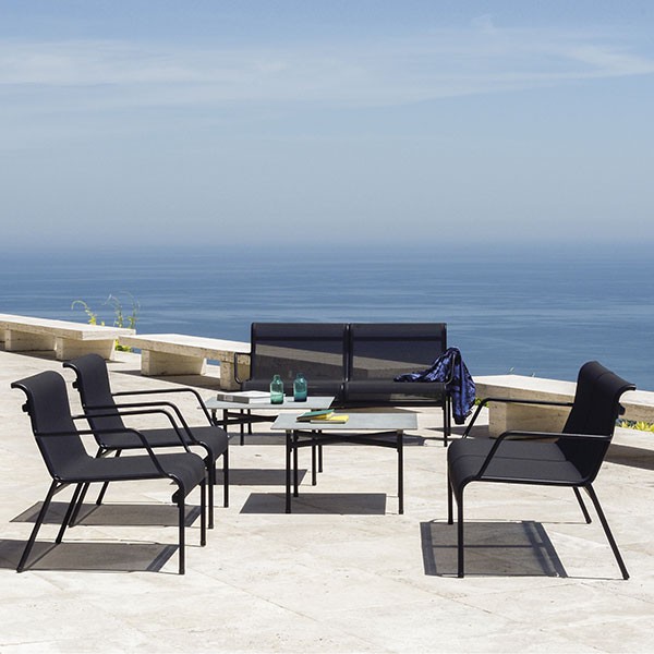 Veel 2 en Kira van de Emu werd ontworpen door ontwerper Christophe Pillet. De collectie Kira is een volledig assortiment vervaardigd uit aluminium geschilderd buisvormige gekoppeld aan een Emu - Tex stof speciaal voor buiten. Kira trekt een zomer cocktail die lichtheid, sensualiteit en elegantie mengt. Meubels weerbestendig, UV- en extreme temperaturen; U kunt het binnenshuis of buitenshuis. Simpel maar geraffineerd, deze fauteuil in verschillende kleuren is ideaal voor het maken van een gastvrije sfeer.
