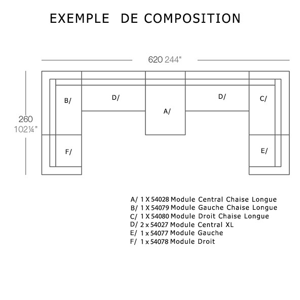 Centrale XL Module wordt geassocieerd met de andere modules Vela apart verkocht: Add-on recht XL / Module links XL / Module rechts / Links Module / Module van hoek / Module links Chaise Longue / Module juiste Chaise Longue