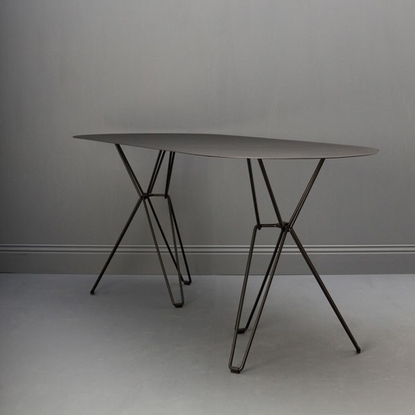 Tabel met ovale metalen lade, gegalvaniseerd staal, polyester coating die structuur