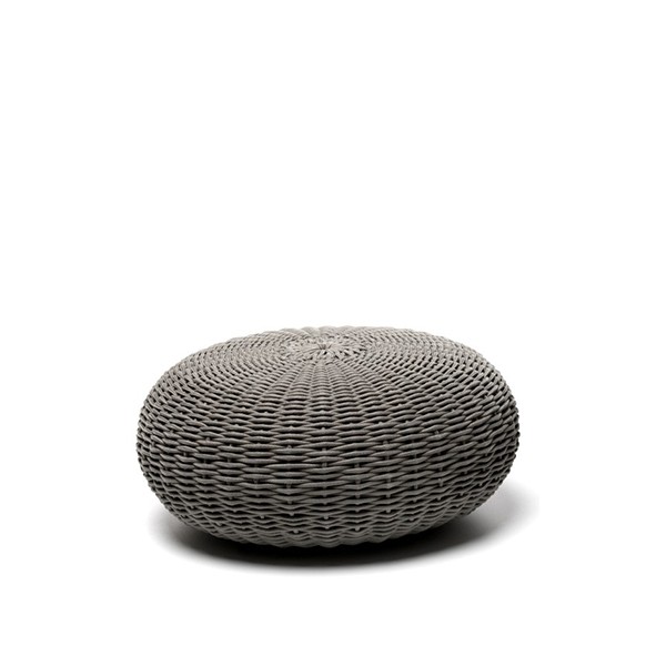 Poef ontworpen voor gebruik buitenshuisPoef met stalen structuur bedekt met handgevlochten touw
