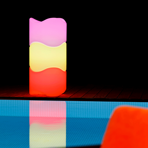 Poef / lamp batterij voor buiten draadloosPoef stapelbaar om een lichte kolom te maken