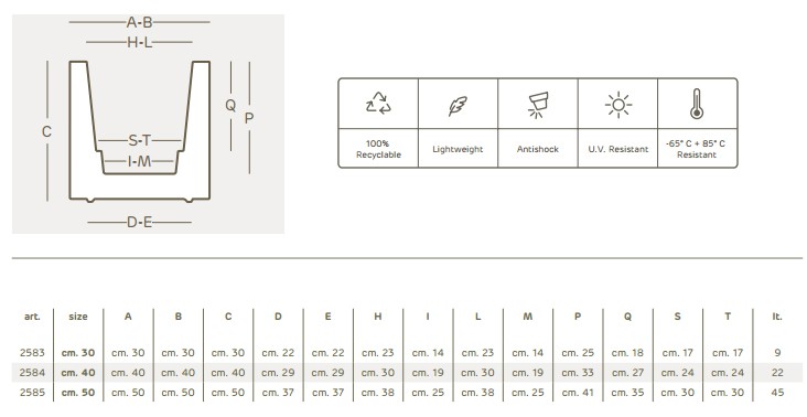 Pot in ultra-resines (PE) niet-toxisch en recyclebaar