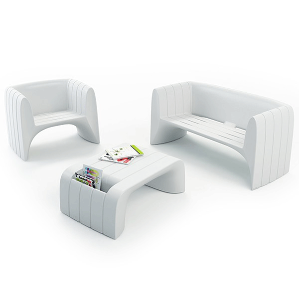 De woonkamer van tuin Groove in 21ste Living Art is een ontwerp Outdoor furniture set. Deze tuin meubilair combineert een strak en modern stijl dat uw gasten zal verrukken. Het is gemaakt in Polyethykene, een weer-bestendig materiaal. Op een terras, een balkon, aan de rand van een zwembad of de tuin Toon embelira uw woning. Aarzel niet!