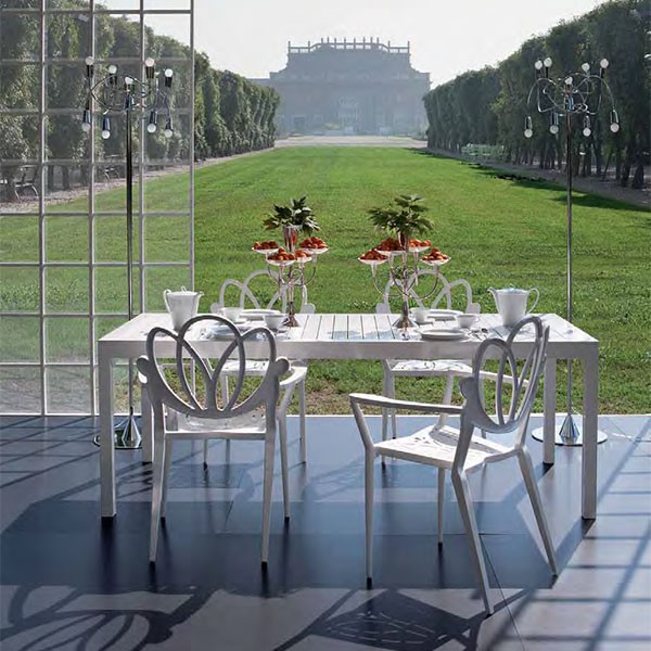 Vergezeld van een kleine witte kussen, biedt stoel Marguerite optimaal comfort voor heerlijke maaltijden buiten.