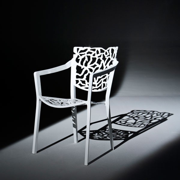 Gemaakt van wit gelakt aluminium fusion, PetiteMadeleine weer resistente en kan zitten op uw terras of in uw tuin zonder angst.