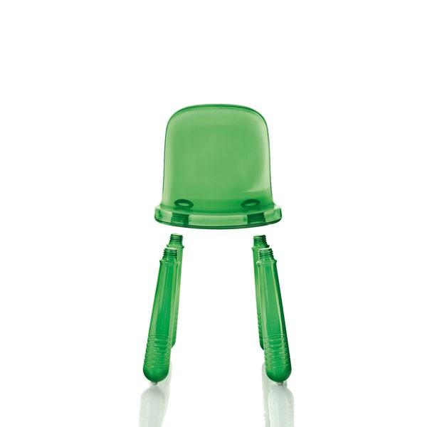Gemaakt van gerecycled polyethyleen, was de sprankelende stoel vervaardigd op dezelfde manier die flessen water en de vorm van zijn voeten hen ondubbelzinnig oproepen!