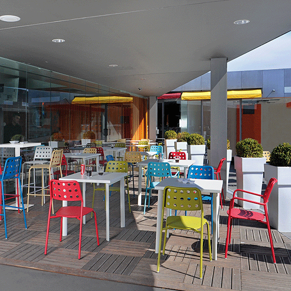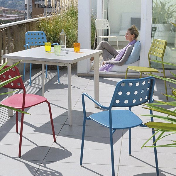 Verkrijgbaar in 10 kleuren: grijs cement, aluminium, ijzer, oude, witte naturel, zwart, bruin India, blauw, groen, oranje en ScarletSet van 4 stoelen Shot van de Emu is een van de 4 buiten stoelen ideaal voor zowel privé- en contract gebruik. Hun buisstructuur, hun zetel staal en hun rug naar opengewerkte patronen staan garant voor extreem comfort. Deze stoelen zijn met hun systeem van bescherming van metaal "EMU jas" zeer resistent tegen verwering. Deze stapelbare en opslaan stoelen passen in verschillende contexten en tot de Emu toetreden als de Tabel Starcollectie van verschillende tabellen . Verkrijgbaar in verschillende kleur trends, deze levendige stoelen een vleugje versheid aan uw buitenkant. U vindt in dezelfde collectie Stoel schot en de kruk top Shot.
