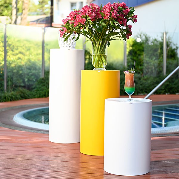 Multifunctioneel object: volgens zijn grootte, kan dienen als een klein krukje, bijzettafeltje of ornament door het installeren van een vaas of potBestaat in 3 afmetingen: