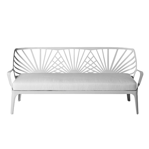 De Sofa Sunrise van in Driade is een tuinmeubilair wit gelakt aluminium. Deze lage sofa deel van de collectie Sunrise, ontworpen door Ludovica en Robert Palomba. Deze ultra meubeldesign en hedendaagse herinneren ons aan de oude meubilair in smeedijzer. De ontwerpen vertegenwoordigen een zonsondergang, vandaar de naam "Sunrise". Elegante en poëtische, Sunrise collectie zal u verrassen met haar unieke stijl, die een ontmoeting tussen twee tijdperken. Fijn weer-bestendig, en heeft een vrijwel onbeperkte levensduur.