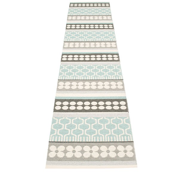 -L70cm x l360cmTapijt Asta bleke turkoois op Pappelina behoort tot de top collectie van Scandinavische merk. Dit tapijt buiten bestaat traditioneel uit weefmachines en door het gebruik van PVC is gemoderniseerd. Dit geeft het een hoge weerstand tegen verwering, UV en temperatuur extremen. Eenvoudig onderhoud, u kunt wassen het zonder angst, met de hand of machine 30 °. Verkrijgbaar in verschillende kleuren en verschillende maten, Asta zal installeren perfect buiten voordeur van uw huis, op een balkon of langs een zwembad.