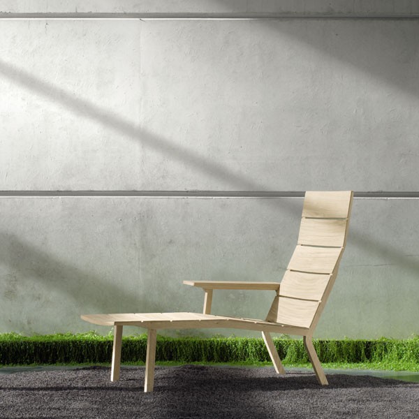 Uitgevoerd in natuurlijke massief eiken, is deze Lounger zeer resistent, ideaal voor lange momenten van ontspanning in de zon.