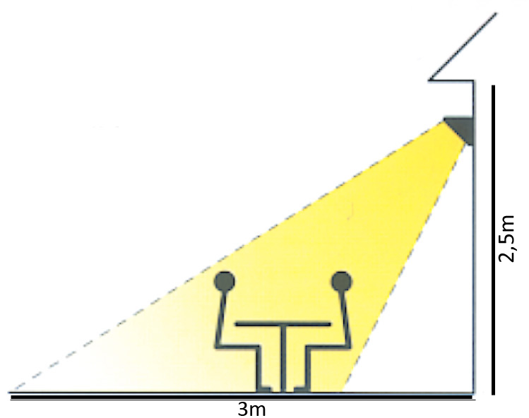 Installatie hoogte minimum van 2.10 m (om veiligheidsredenen: oppervlak van het Panel van straling bereiken een temperatuur van ten minste 350 °)Maximale installatie van 3 m hoogte