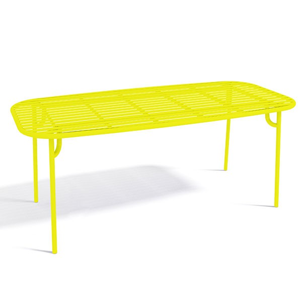 De tabel van maaltijd weekend op Oxyo werd bedacht door Studio BrichetZiegler en ontworpen door ontwerpers Caroline Ziegler & Pierre Brichet. Deze eettafel is onderdeel van het weekend, een compleet assortiment en design collectie gewijd aan de outdoor. Elke meubilair herhalingsbezoeken een traditioneel product met een zeer grafische vorm gegeven door verticale en horizontale lamellen. Vervaardigd uit aluminium gecoat met anti-UV verf, dit meubilair is bruikbaar binnens- en buitenshuis en zullen perfect voor uw publiek of privé met ontwerp spaties. Daling daalde in verschillende kleuren trends, weekend belooft u een hedendaagse ontwikkeling.