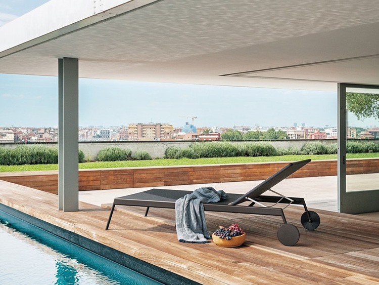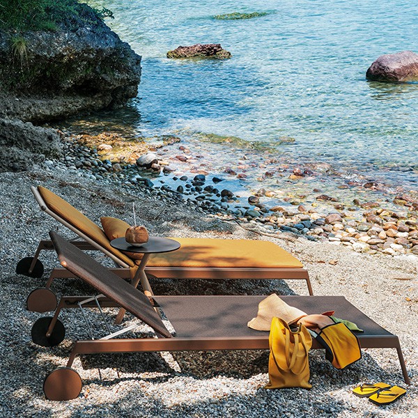 Beschermhoes apart verkrijgbaar als accessoireDe zonnen Piper van Roda is een elegante Lounge Chair ontworpen door de ontwerper Rodolfo Dordoni. Aluminium structuur en ondersteuning in doek Batyline® geven hoge weerstand aan extreme temperaturen, UV en weer. Geïnstalleerd op een terras, een zwembad of in een tuin, is deze zonbad een echte uitnodiging om te ontspannen. Een witte hydrodrainant stof matras is opgenomen om het optimaliseren van uw comfort en de esthetiek van uw meubels. Naast ontwerp is het zonnebaden Piper ook handig met de verstelbare rug (4 standen) en de twee achterwielen die u toestaan om het gemakkelijk te dragen.