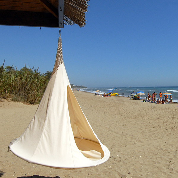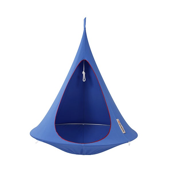 Ook verkrijgbaar in Dubbele versie voor 2 personen en Bebo versie voor kinderenDe Single Cacoon Hanging Tent van Hang-In-Out is de "must-have " van design! Dit hangende tentconcept is geboren uit de verbeelding van ontwerpers en textielexperts om te reageren op het probleem van een hotel in het Verenigd Koninkrijk dat een ontspanningsruimte wilde ontwikkelen in zijn luxe spa. Geïnspireerd door de vorm van het nest van een Mexicaanse vogel, nodigt de Cacoon u uit om te ontspannen. Cacoon hangt in een tuin, in het bos, in een woonkamer, in een slaapkamer, in een hotel of in recreatiecentra, binnen en buiten. Cacoon is gemaakt van nylon en geanodiseerd aluminium en is weerbestendig, het is bestand tegen wind, regen en zon. Resistent maar ook veilig, Cacoon is getest en opgehangen in alle omgevingen zonder enige angst! Voor kinderen en volwassenen belooft deze hangende tent van de kleur van uw keuze mooie momenten van ontspanning en een buitengewone decoratie.